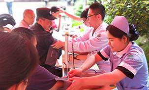 每日上午8點(diǎn)不到,同濟(jì)醫(yī)院組成的一支醫(yī)療團(tuán)隊(duì),身著白衣大褂,帶著醫(yī)療機(jī)械,去往每一個(gè)活動(dòng)現(xiàn)場(chǎng),除了為小區(qū)業(yè)主進(jìn)行免費(fèi)健康咨詢和免費(fèi)健康體檢外,針對(duì)小區(qū)內(nèi)孤寡老人或行動(dòng)不便的業(yè)主,醫(yī)務(wù)人員入戶進(jìn)行診療,詳細(xì)詢問(wèn)病史、了解病情,并給他們講解健康安全知識(shí),日常護(hù)理等注意事項(xiàng),使業(yè)主感動(dòng)不已。